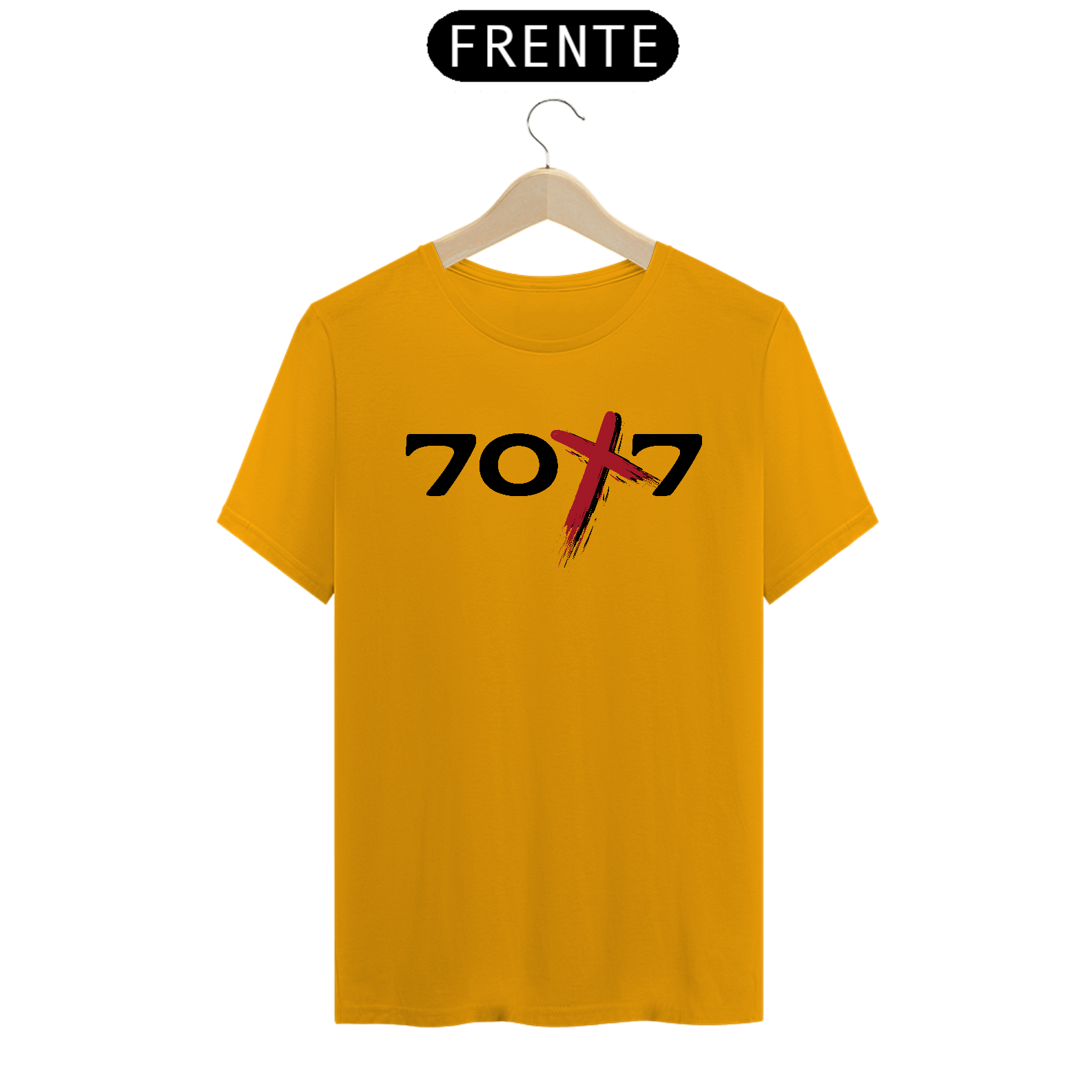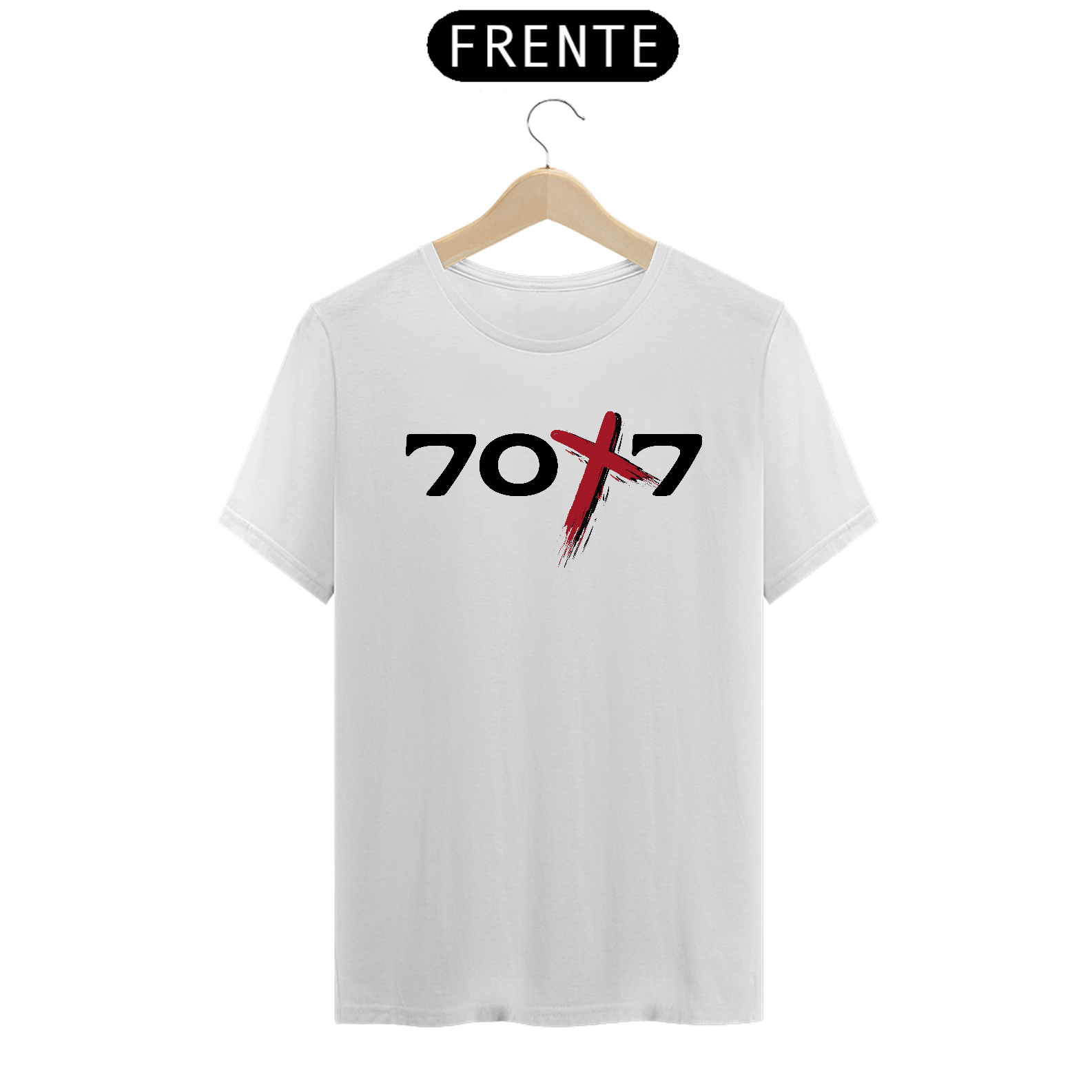 Camiseta inspiradora com a mensagem "70x7", representando o ensinamento de Jesus sobre o perdão infinito. Um lembrete poderoso de amor, graça e misericórdia, perfeito para quem deseja expressar sua fé com estilo. Vista essa verdade e espalhe a mensagem de perdão e reconciliação por onde for!
