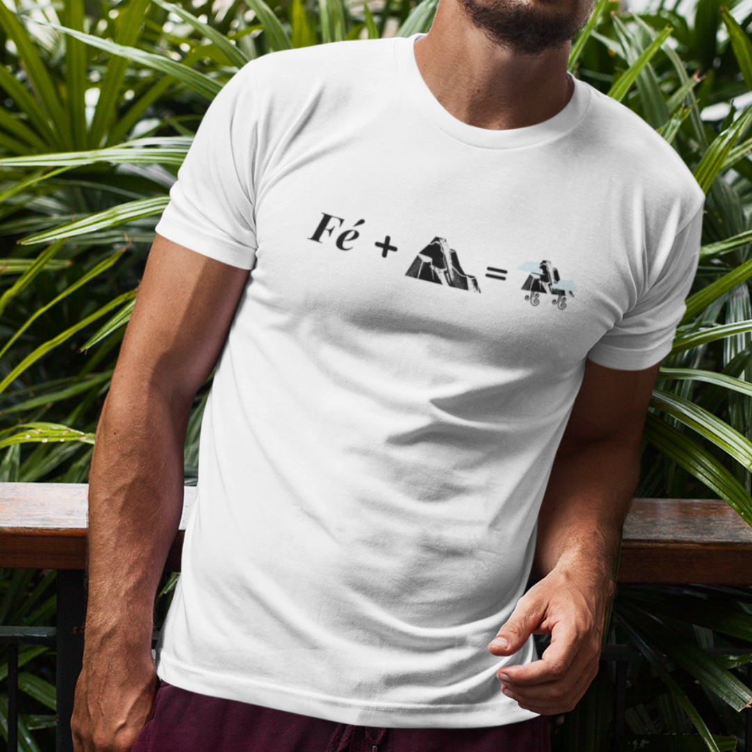Camiseta "A Fé Move Montanhas", com uma estampa em ícones que transmite visualmente o poder da fé para superar desafios. Um design criativo e inspirador, perfeito para expressar sua crença de forma sutil e impactante. Vista essa mensagem e compartilhe a esperança sem precisar de palavras!