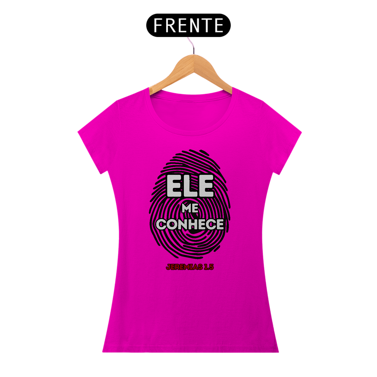 Camiseta feminina "Ele me conhece", inspirada em Jeremias 1:5, um lembrete do amor e propósito de Deus para cada mulher. Antes mesmo de nascermos, Ele já nos conhecia e escolheu. Perfeita para quem deseja expressar sua fé com delicadeza e significado. Vista essa verdade e celebre sua identidade em Cristo!