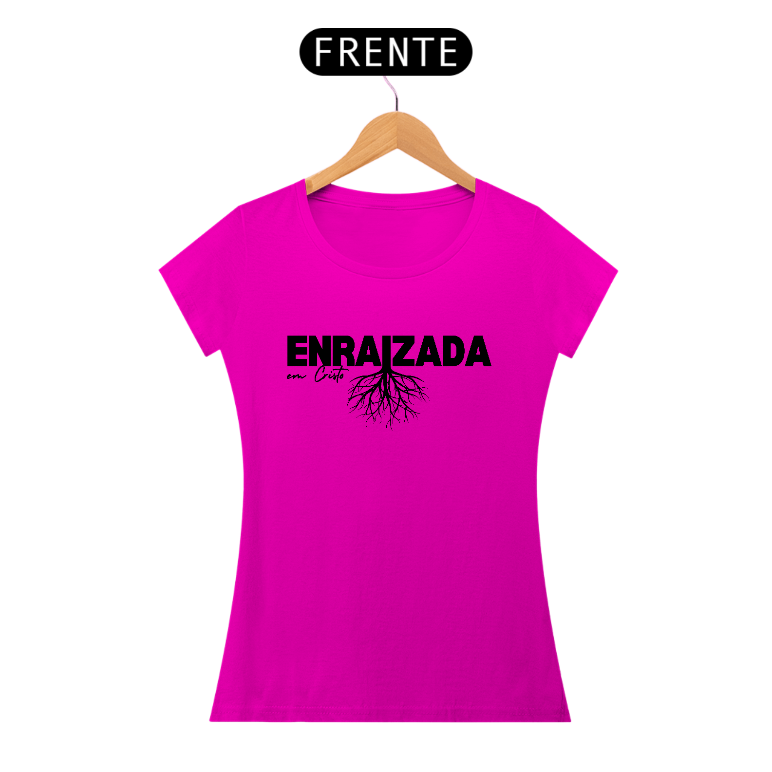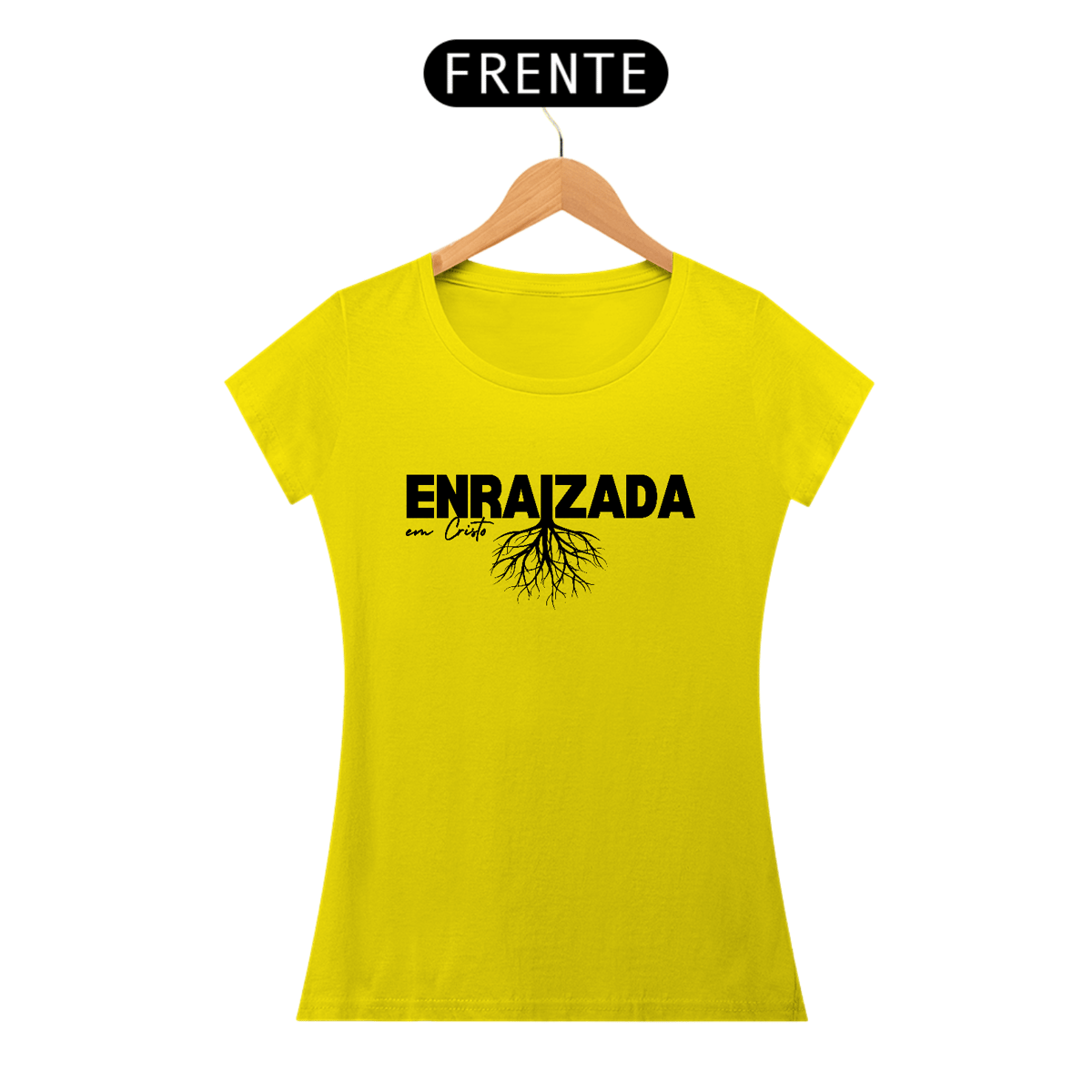 Camiseta feminina com a mensagem "Enraizada em Cristo", inspirada na fé que nos fortalece e sustenta. Para mulheres que desejam viver firmes no amor de Deus, crescendo espiritualmente e refletindo Sua graça. Perfeita para expressar sua fé com estilo e leveza. Vista essa verdade e floresça em Cristo!
