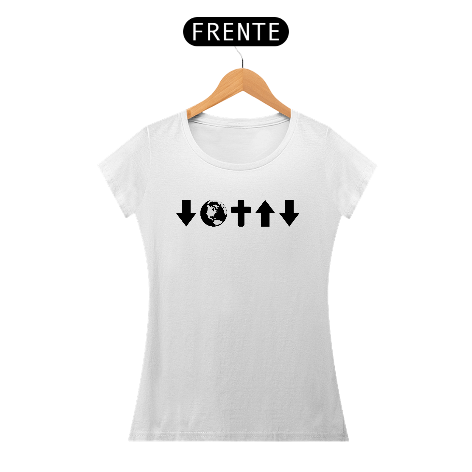 Camiseta feminina "Evangelismo sem palavras", com uma estampa em símbolos que transmite o Evangelho de forma sutil e inspiradora. Perfeita para mulheres que desejam compartilhar sua fé com delicadeza e criatividade, despertando curiosidade e abrindo portas para falar de Jesus. Vista essa missão e brilhe por onde for!