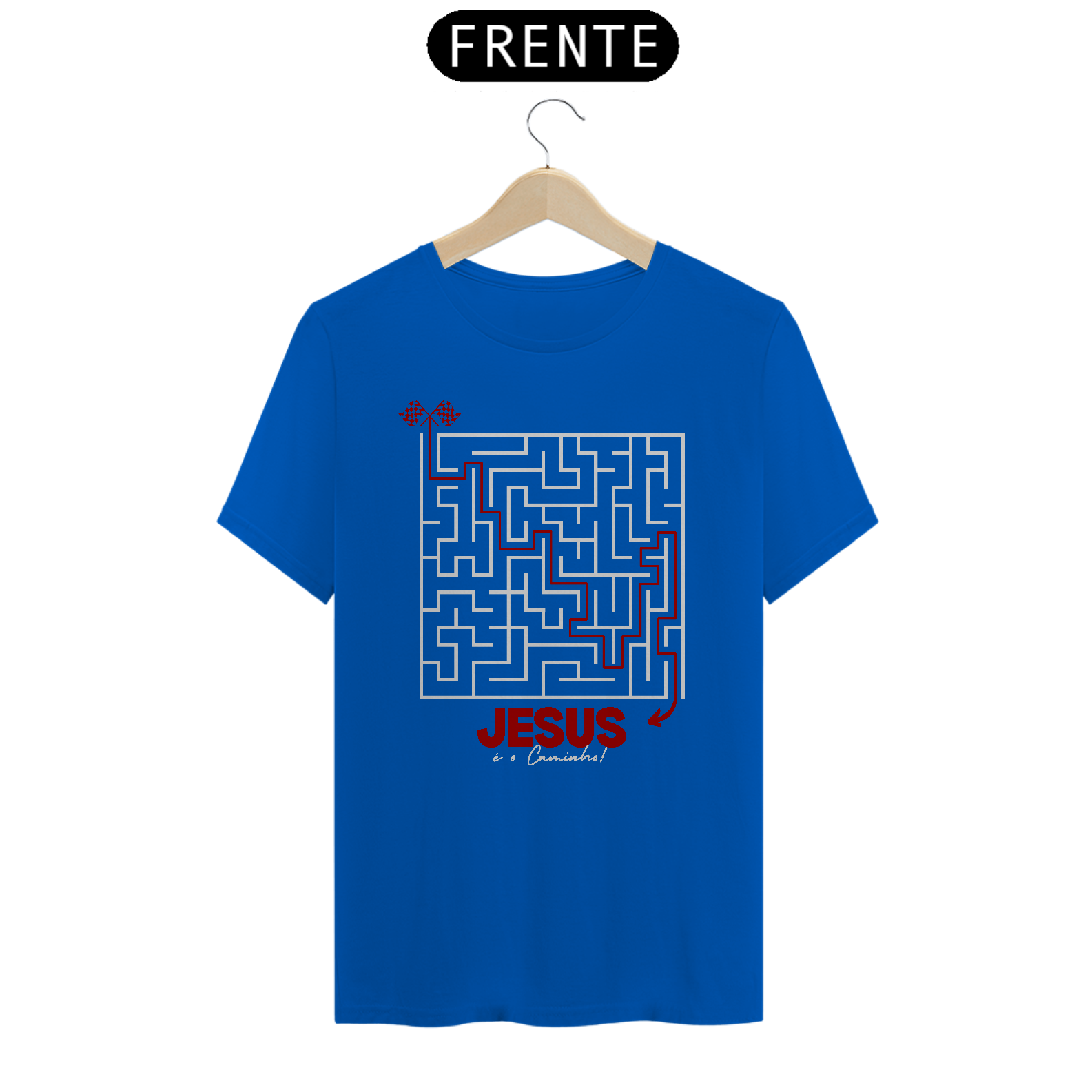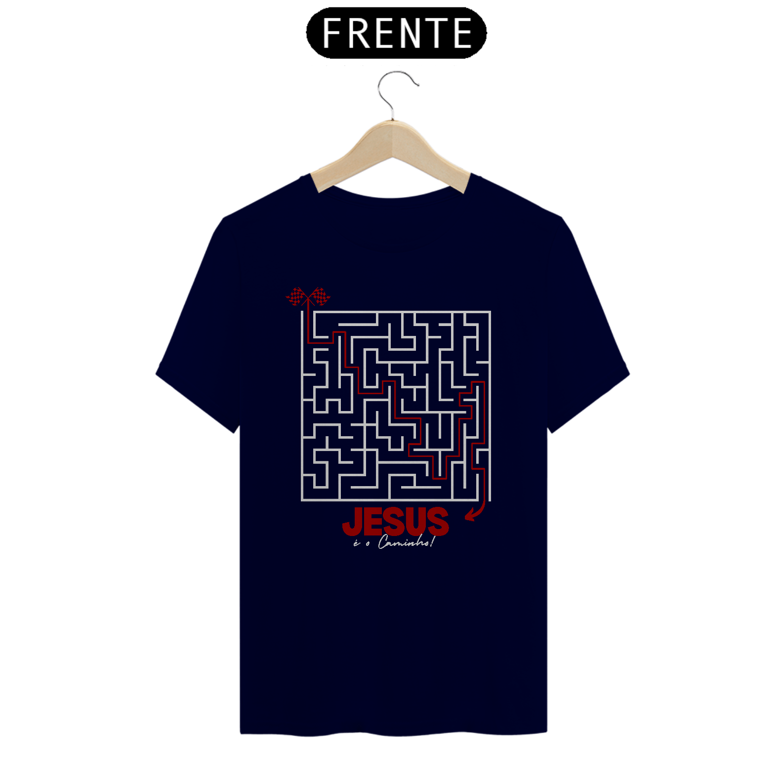 Camiseta "Jesus é o Caminho", com um design criativo de um labirinto, onde a única saída aponta para Jesus. Um lembrete poderoso de que Ele é a única direção segura para a vida e a salvação. Perfeita para expressar sua fé de forma impactante. Vista essa verdade e mostre ao mundo o caminho certo!