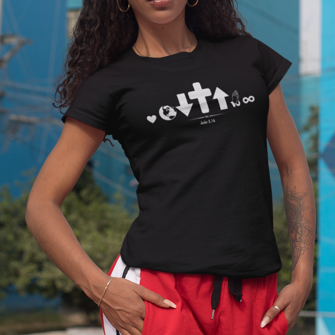 Camiseta inspiradora com a poderosa mensagem "João 3.16", o versículo que expressa o amor incondicional de Deus: "Porque Deus amou o mundo de tal maneira...". Perfeita para demonstrar sua fé e compartilhar essa verdade transformadora. Vista essa mensagem e leve esperança por onde for!