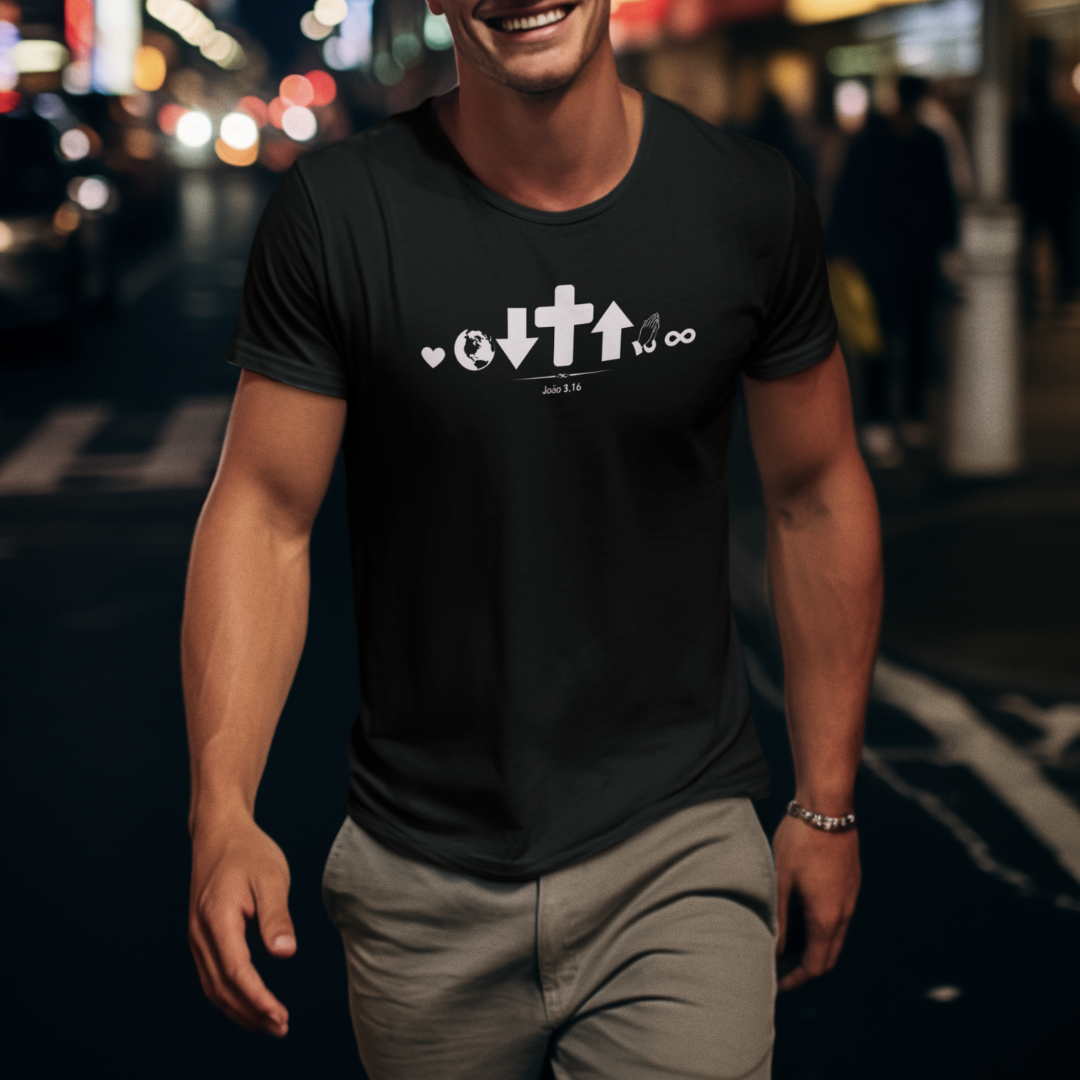 Camiseta inspiradora com a poderosa mensagem "João 3.16", o versículo que expressa o amor incondicional de Deus: "Porque Deus amou o mundo de tal maneira...". Perfeita para demonstrar sua fé e compartilhar essa verdade transformadora. Vista essa mensagem e leve esperança por onde for!