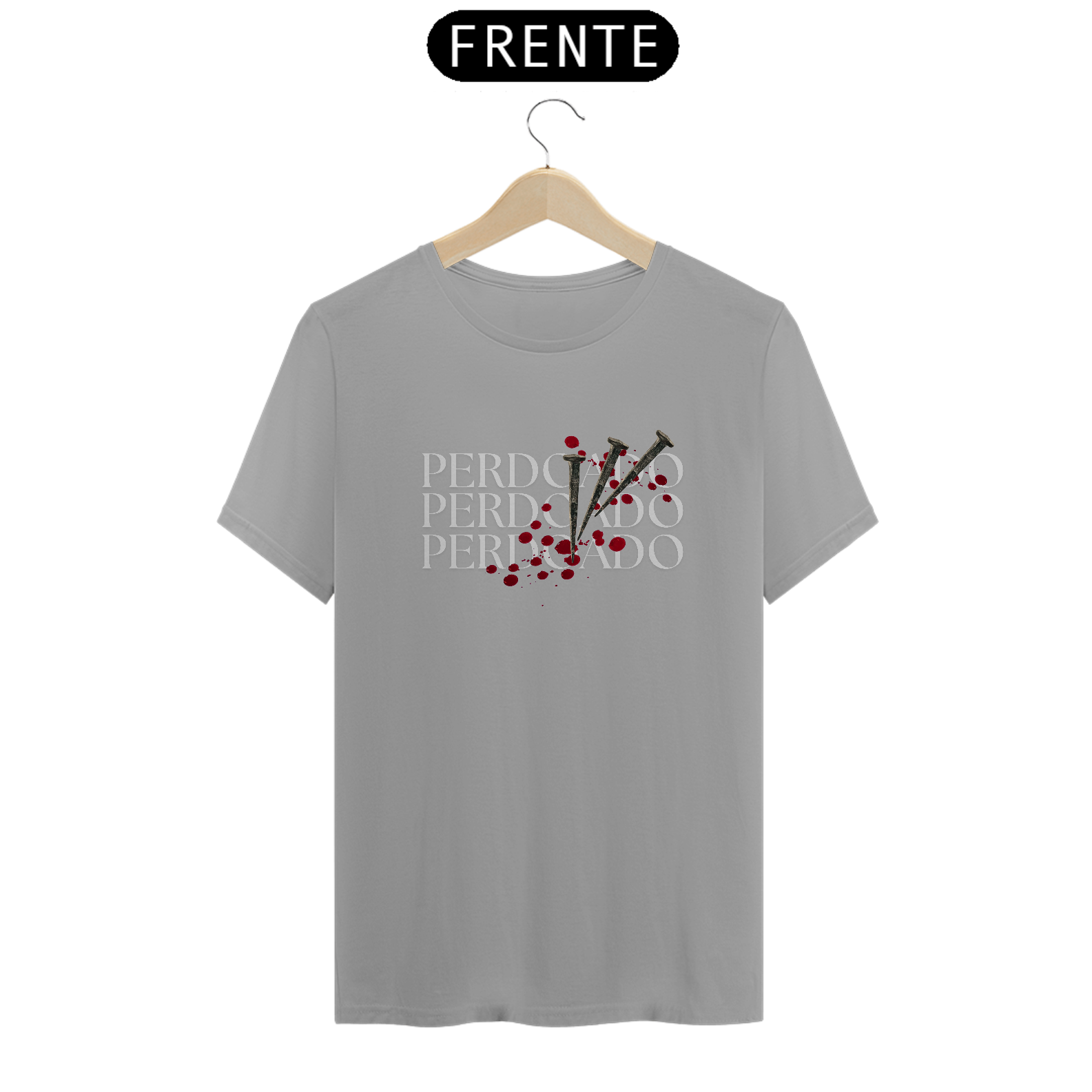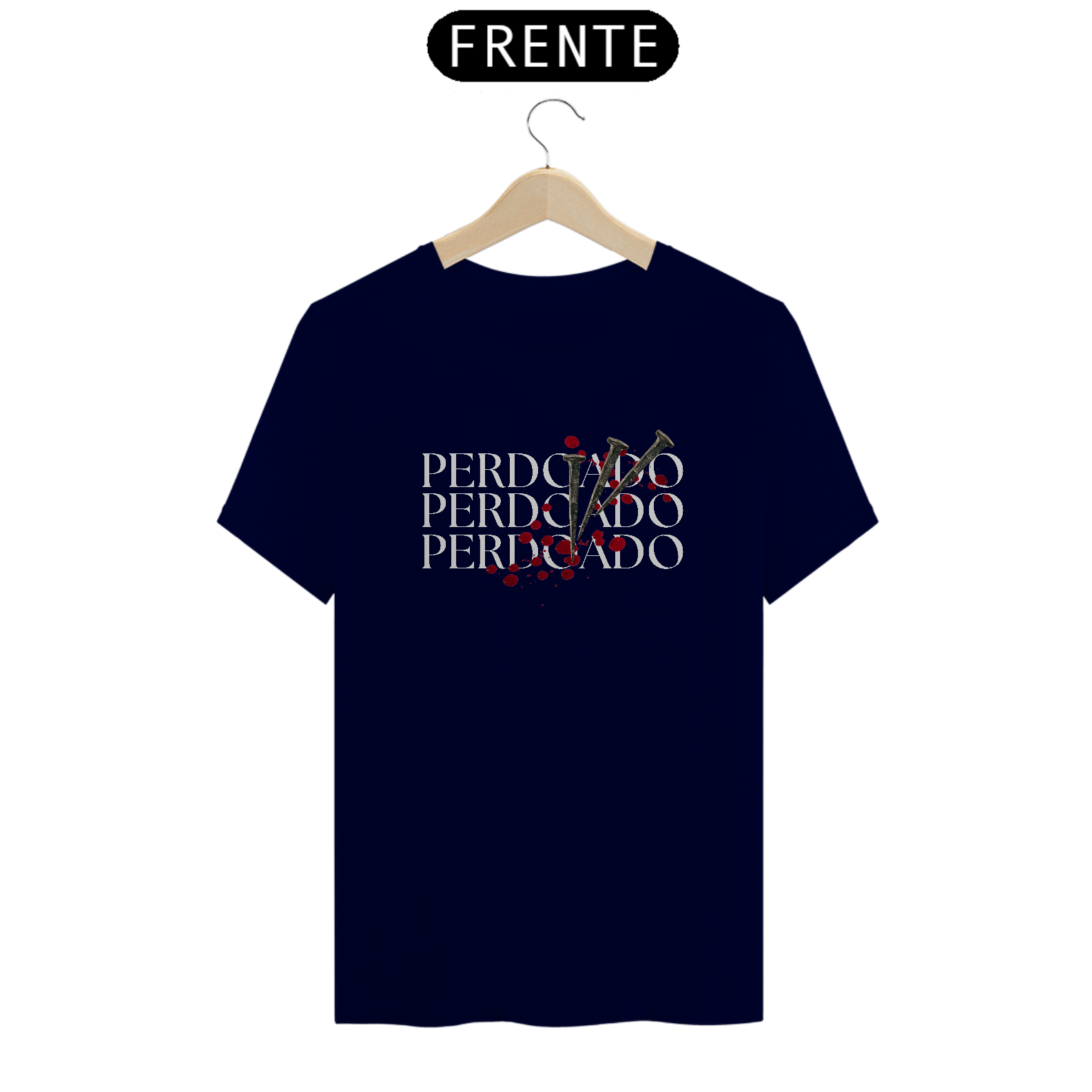 Camiseta com a mensagem "Perdoado", um poderoso lembrete da graça e misericórdia de Deus. Em Cristo, somos libertos do passado e renovados pelo Seu amor. Perfeita para expressar sua fé e gratidão pela salvação. Vista essa verdade e compartilhe a mensagem do perdão divino por onde for!
