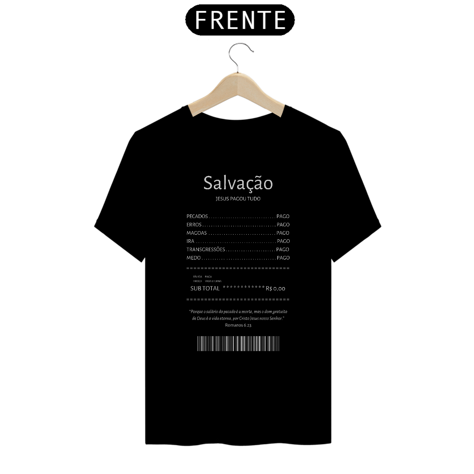 Camiseta inspiradora com a mensagem "Recibo da Graça", simbolizando que a salvação em Cristo é um presente gratuito, pago na cruz. Um lembrete poderoso do amor e misericórdia de Deus, perfeito para expressar sua fé com estilo. Vista essa verdade e compartilhe a graça divina por onde for!