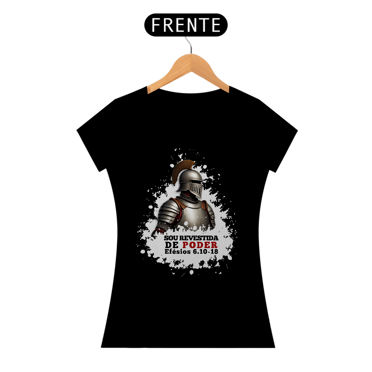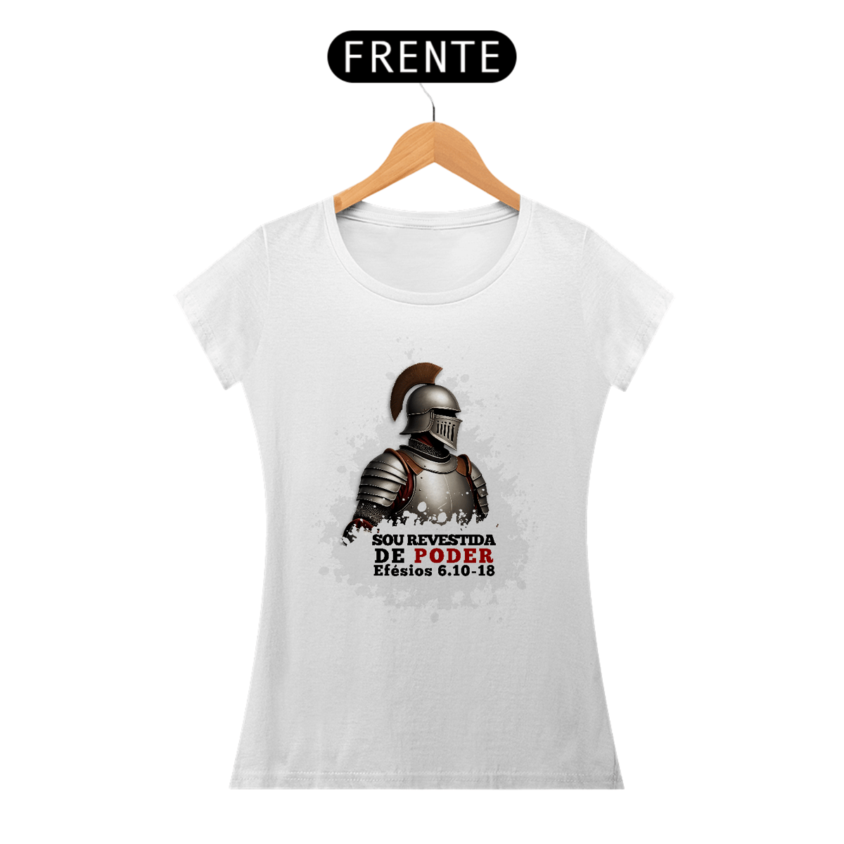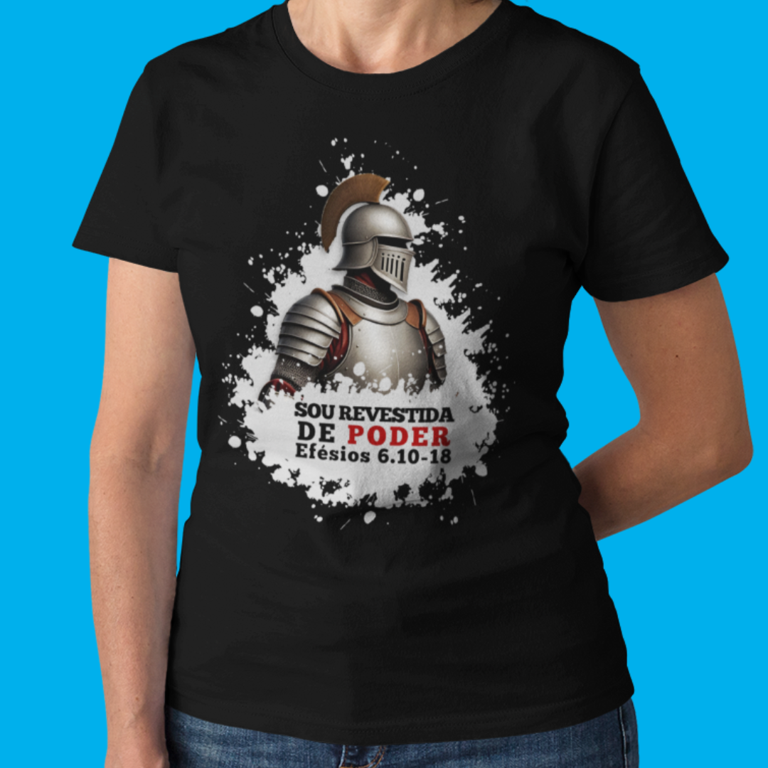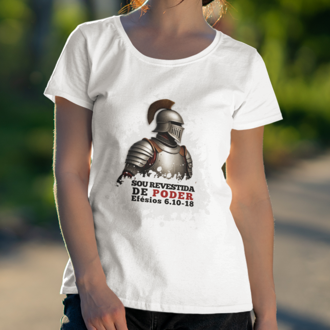 Camiseta com a mensagem "Sou revestido de poder", inspirada em Efésios 6:10-18, que nos ensina a vestir a armadura de Deus para enfrentar os desafios da vida. Um lembrete de que, com a força de Cristo, estamos preparados para lutar contra o mal. Vista essa verdade e caminhe em vitória!