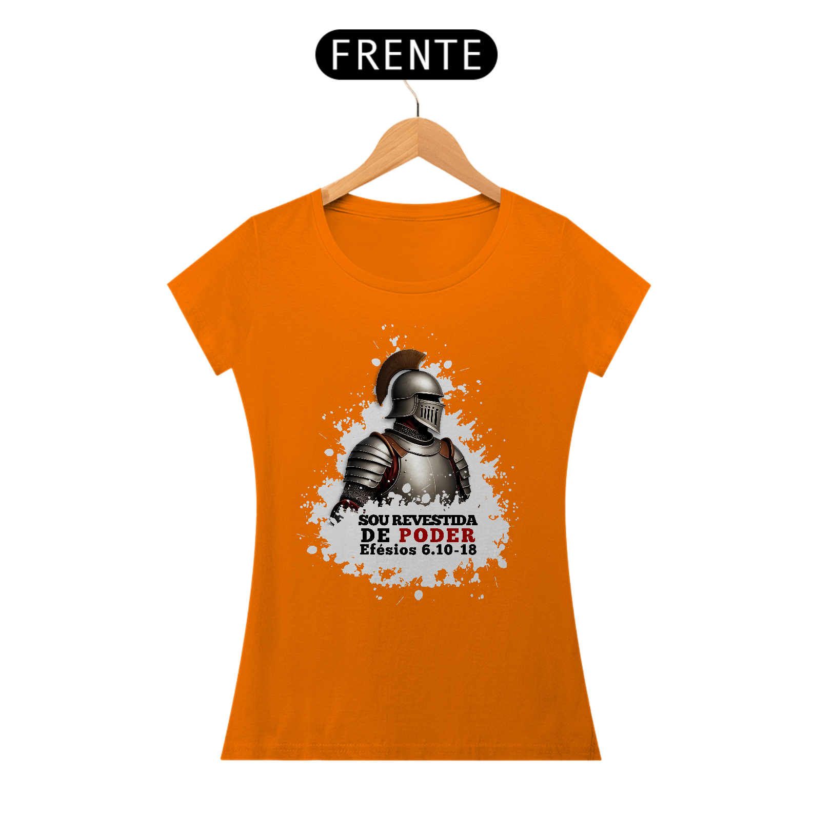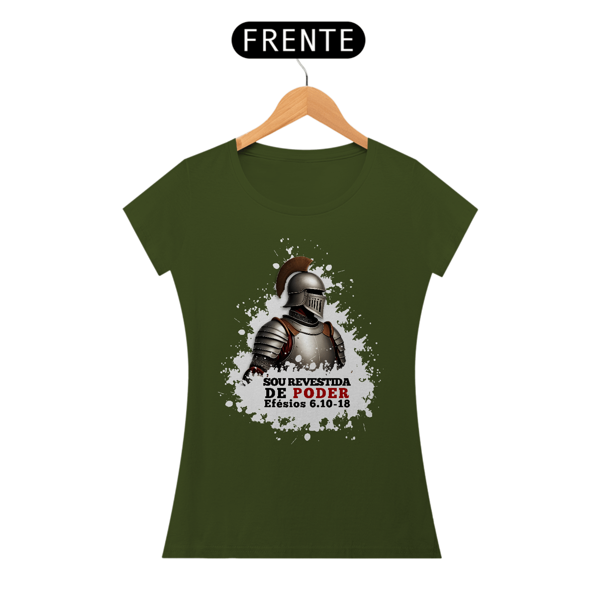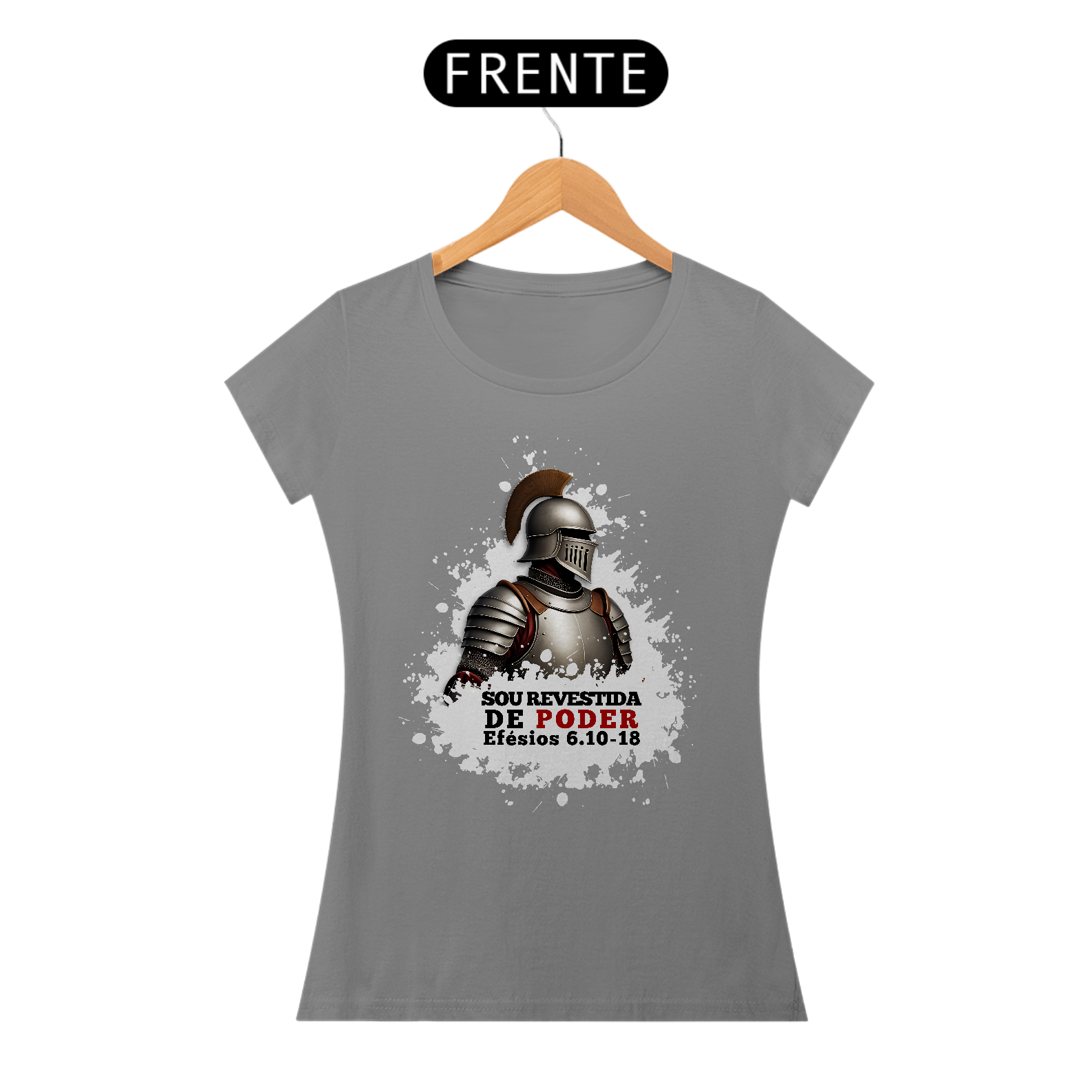 Camiseta com a mensagem "Sou revestido de poder", inspirada em Efésios 6:10-18, que nos ensina a vestir a armadura de Deus para enfrentar os desafios da vida. Um lembrete de que, com a força de Cristo, estamos preparados para lutar contra o mal. Vista essa verdade e caminhe em vitória!