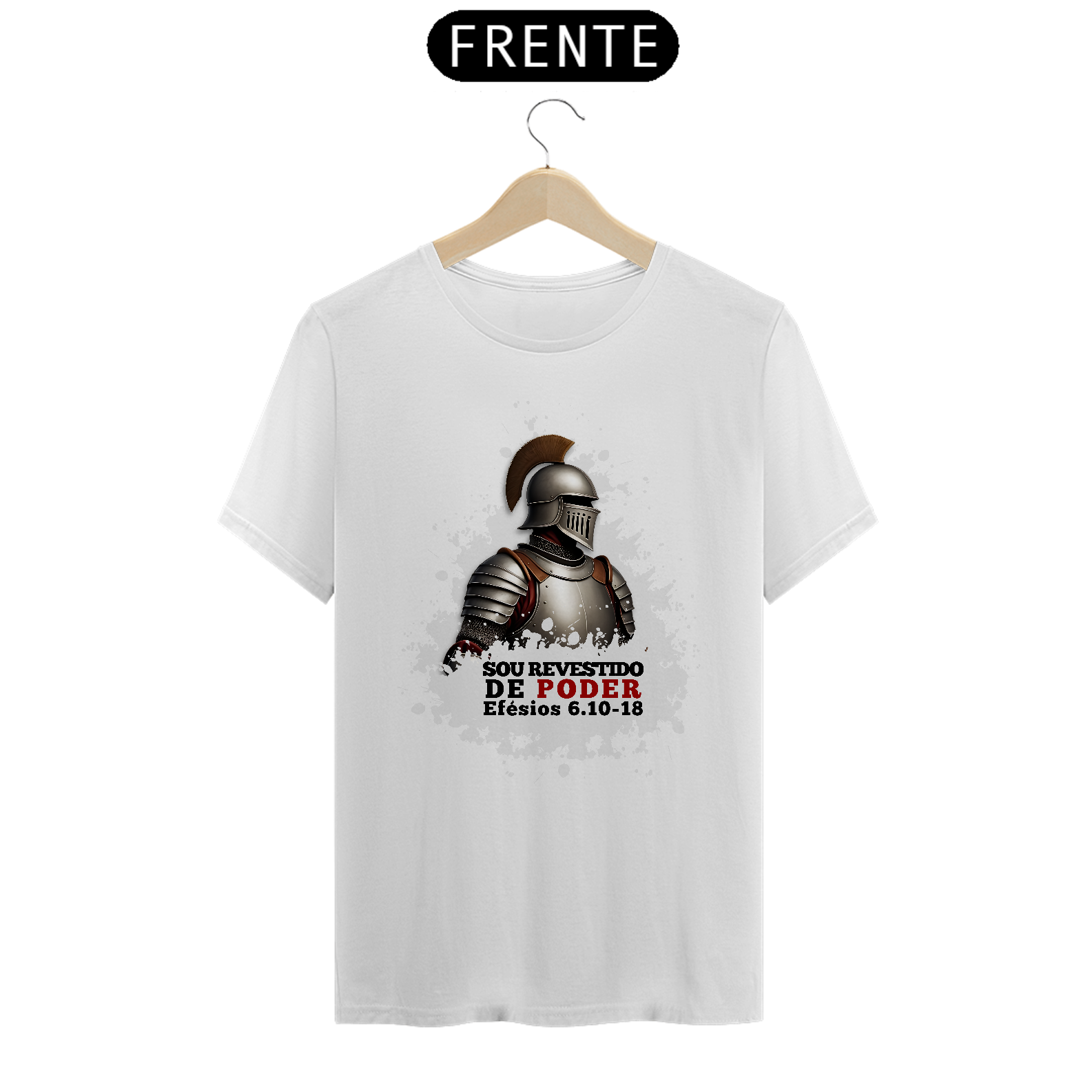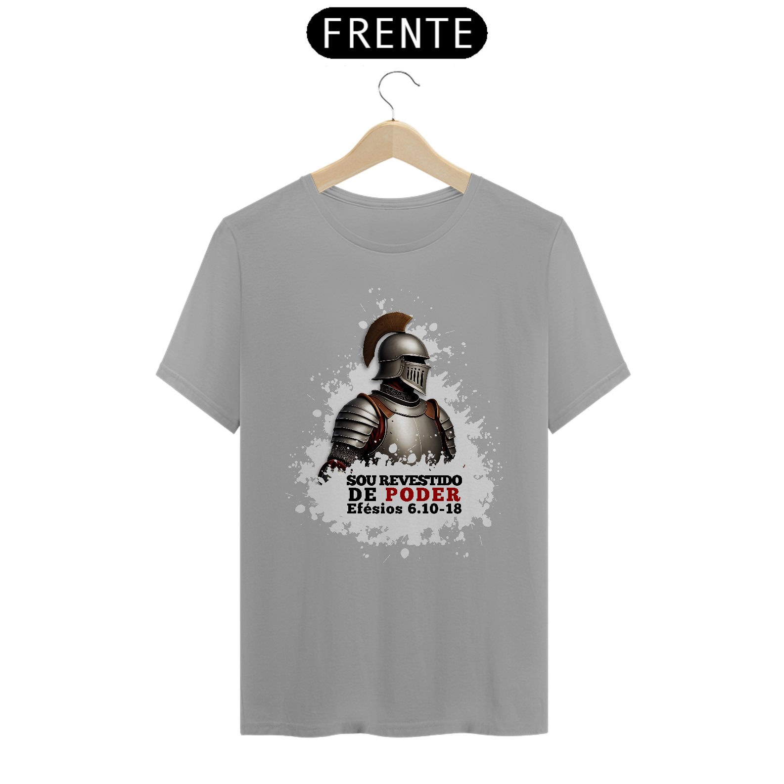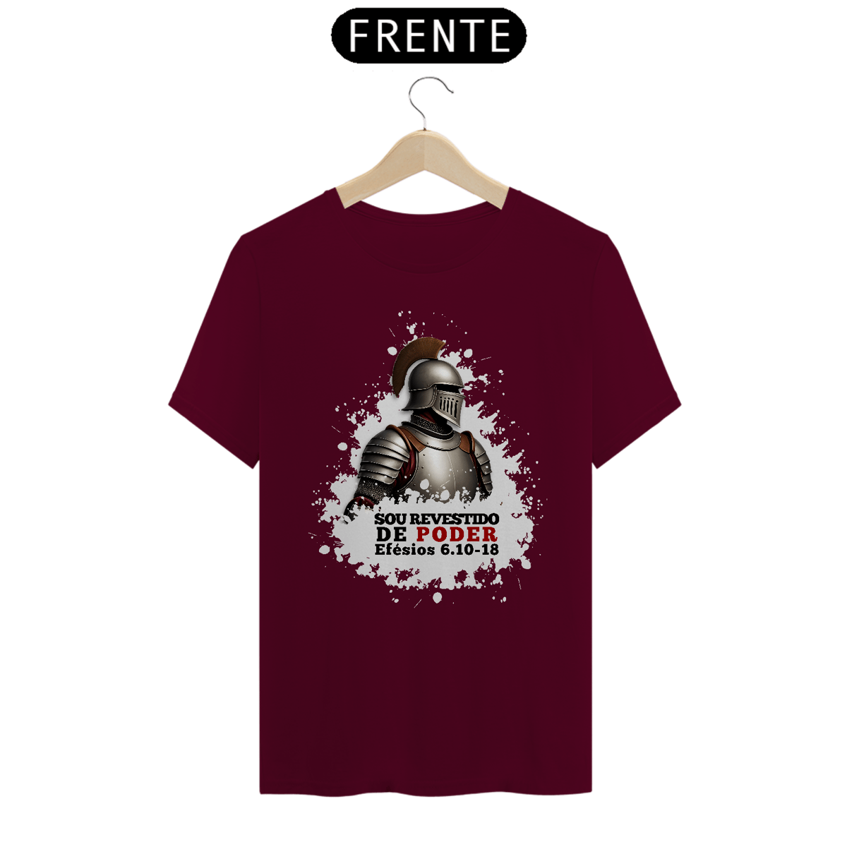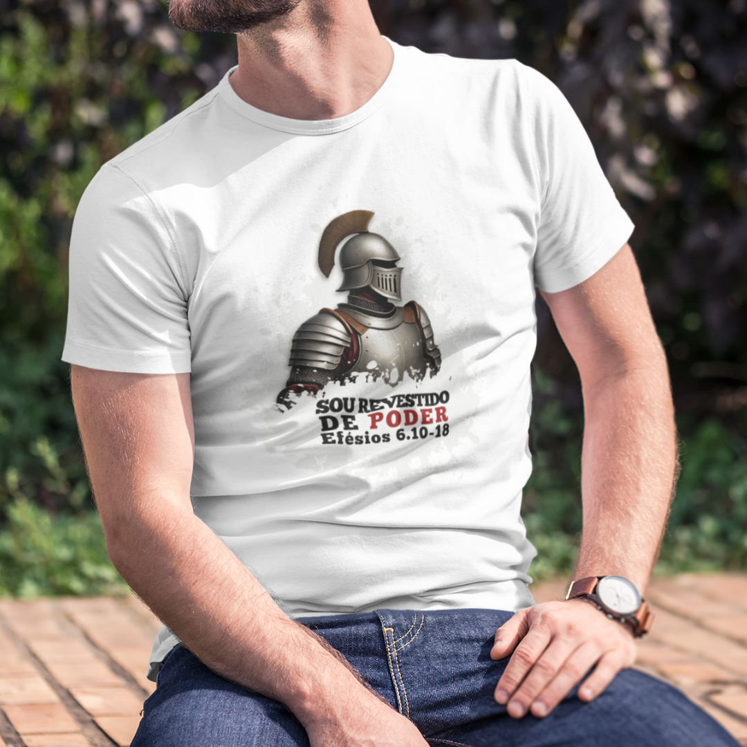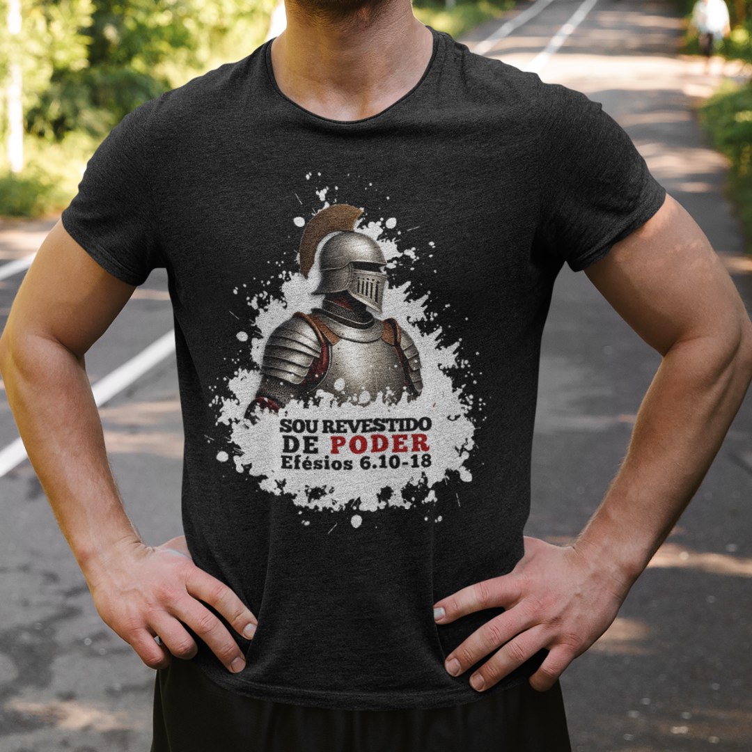 Camiseta com a mensagem "Sou revestido de poder", inspirada em Efésios 6:10-18, que nos ensina a vestir a armadura de Deus para enfrentar os desafios da vida. Um lembrete de que, com a força de Cristo, estamos preparados para lutar contra o mal. Vista essa verdade e caminhe em vitória!