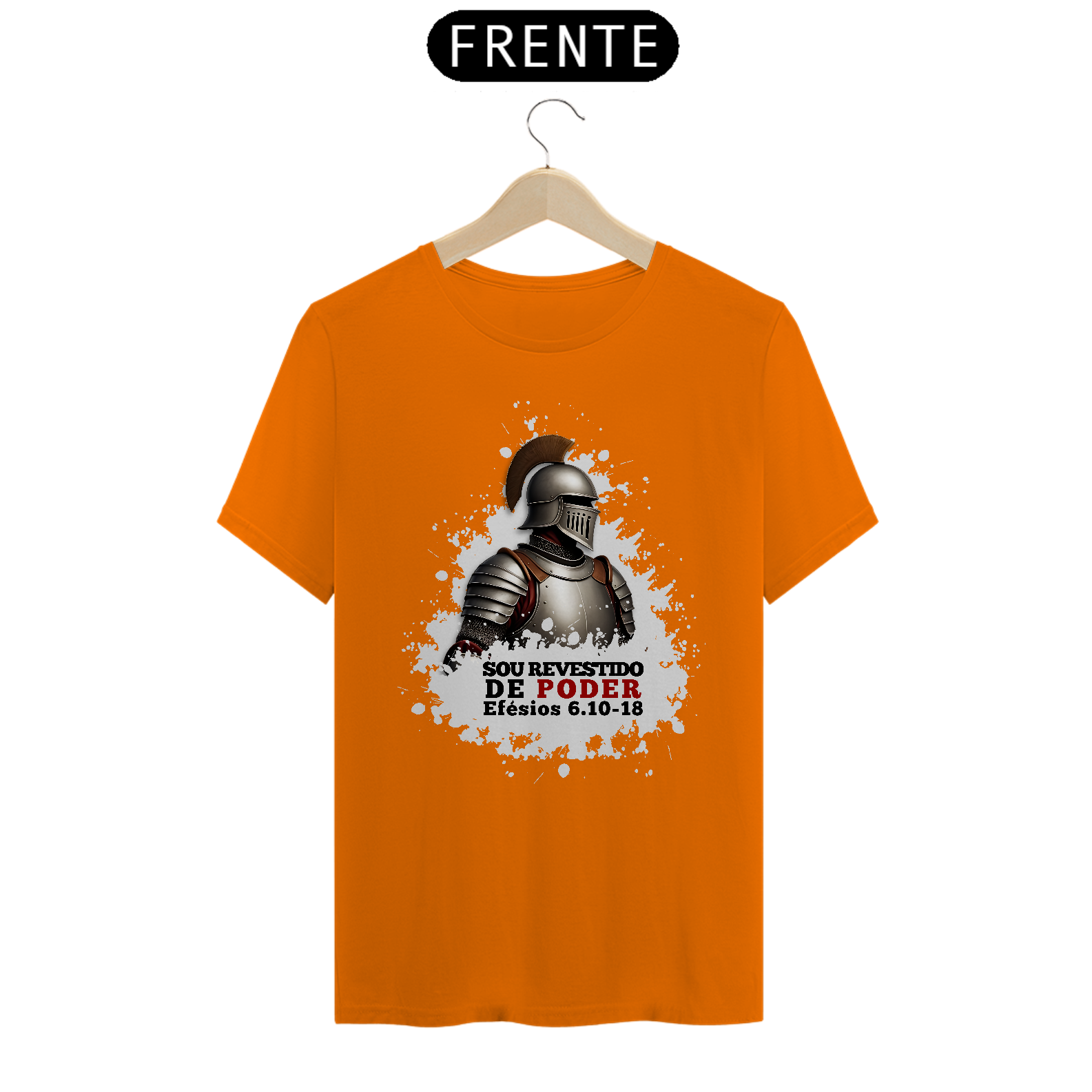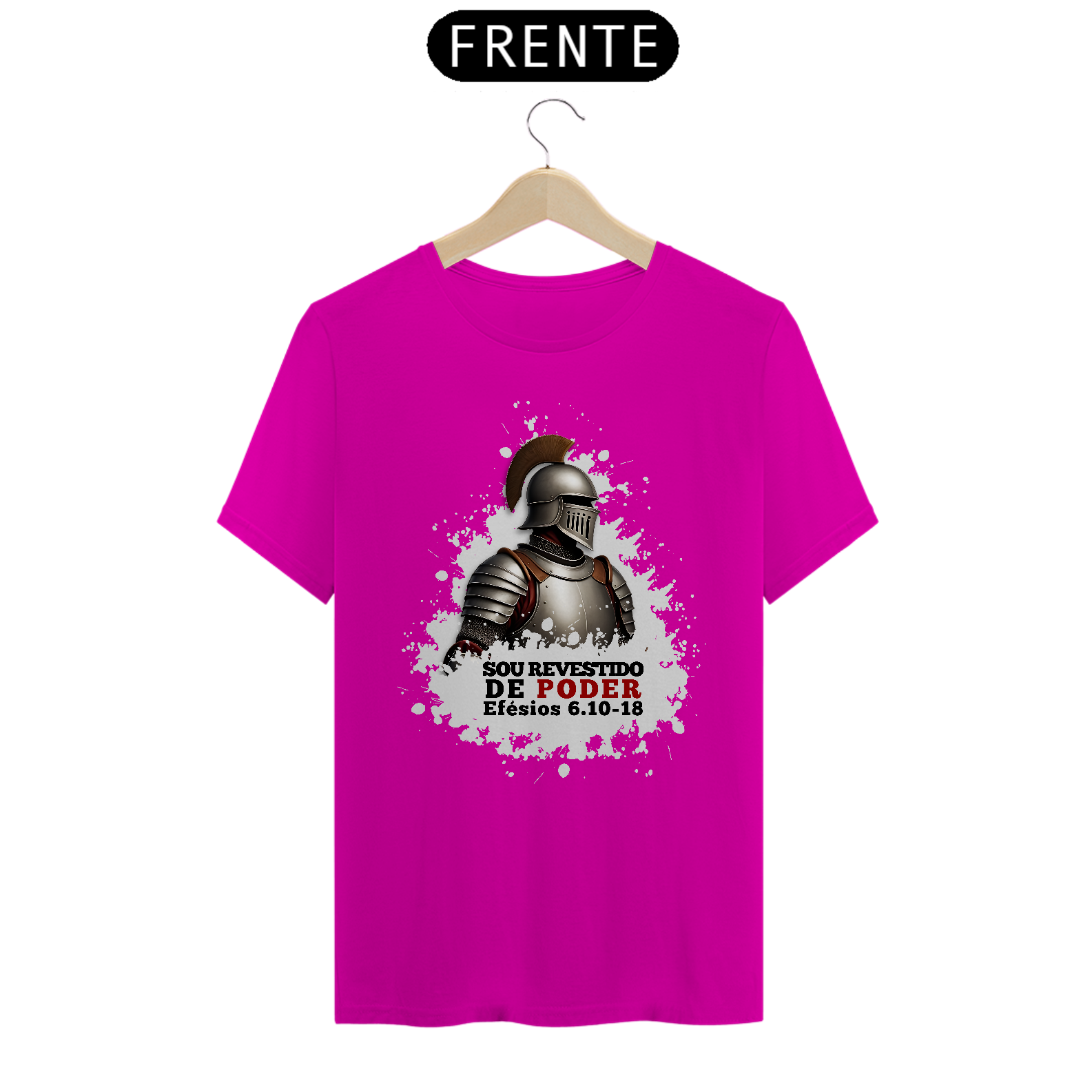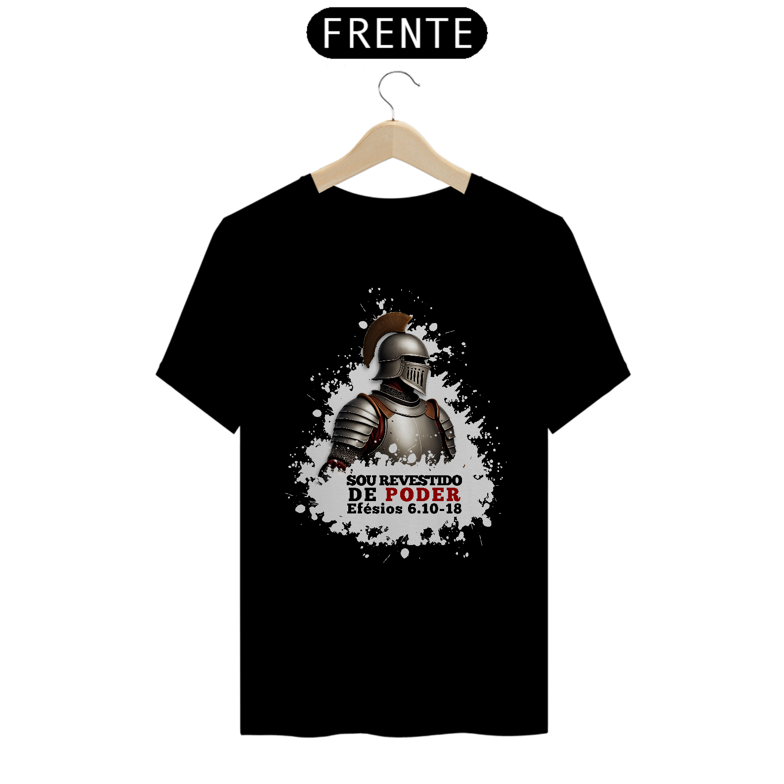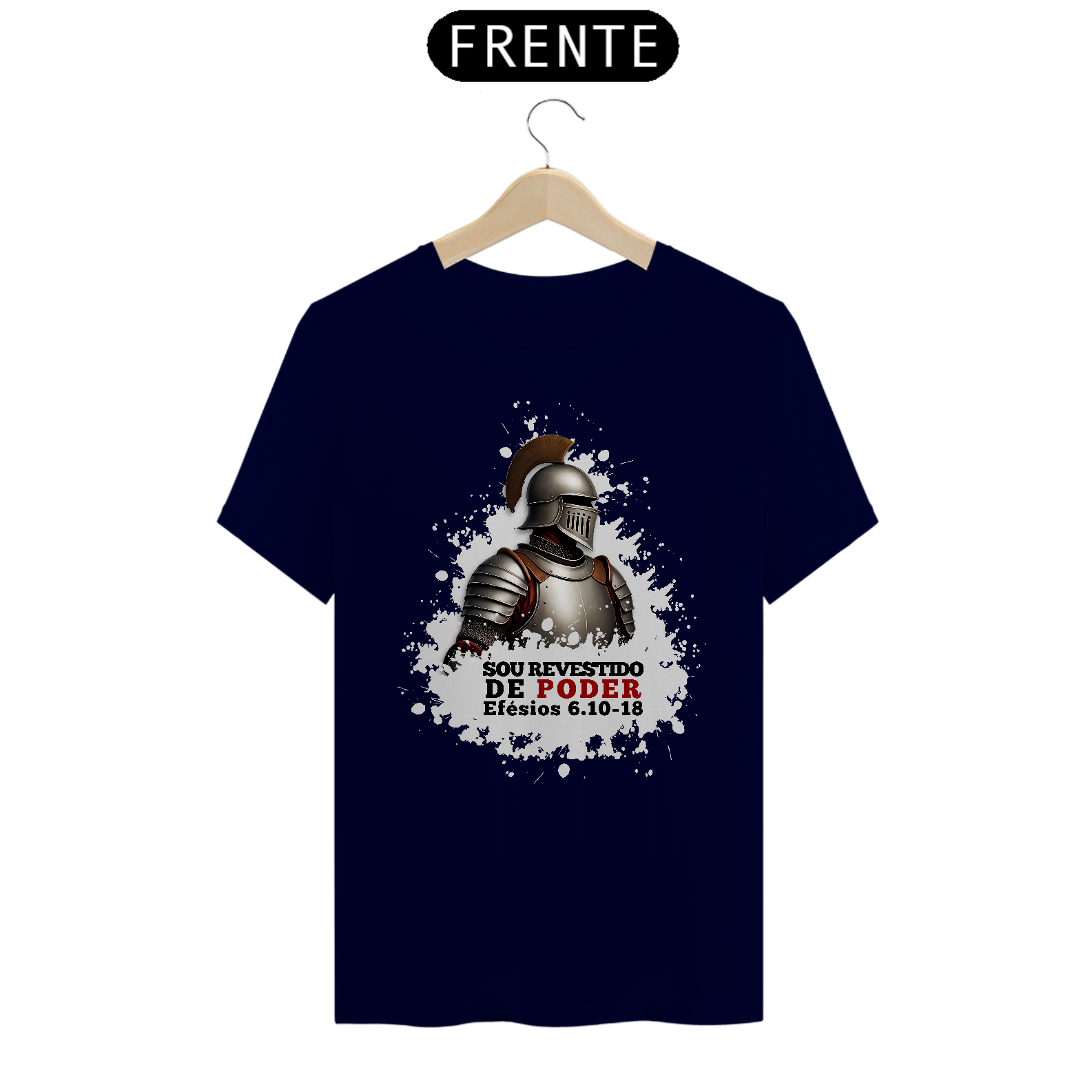 Camiseta com a mensagem "Sou revestido de poder", inspirada em Efésios 6:10-18, que nos ensina a vestir a armadura de Deus para enfrentar os desafios da vida. Um lembrete de que, com a força de Cristo, estamos preparados para lutar contra o mal. Vista essa verdade e caminhe em vitória!